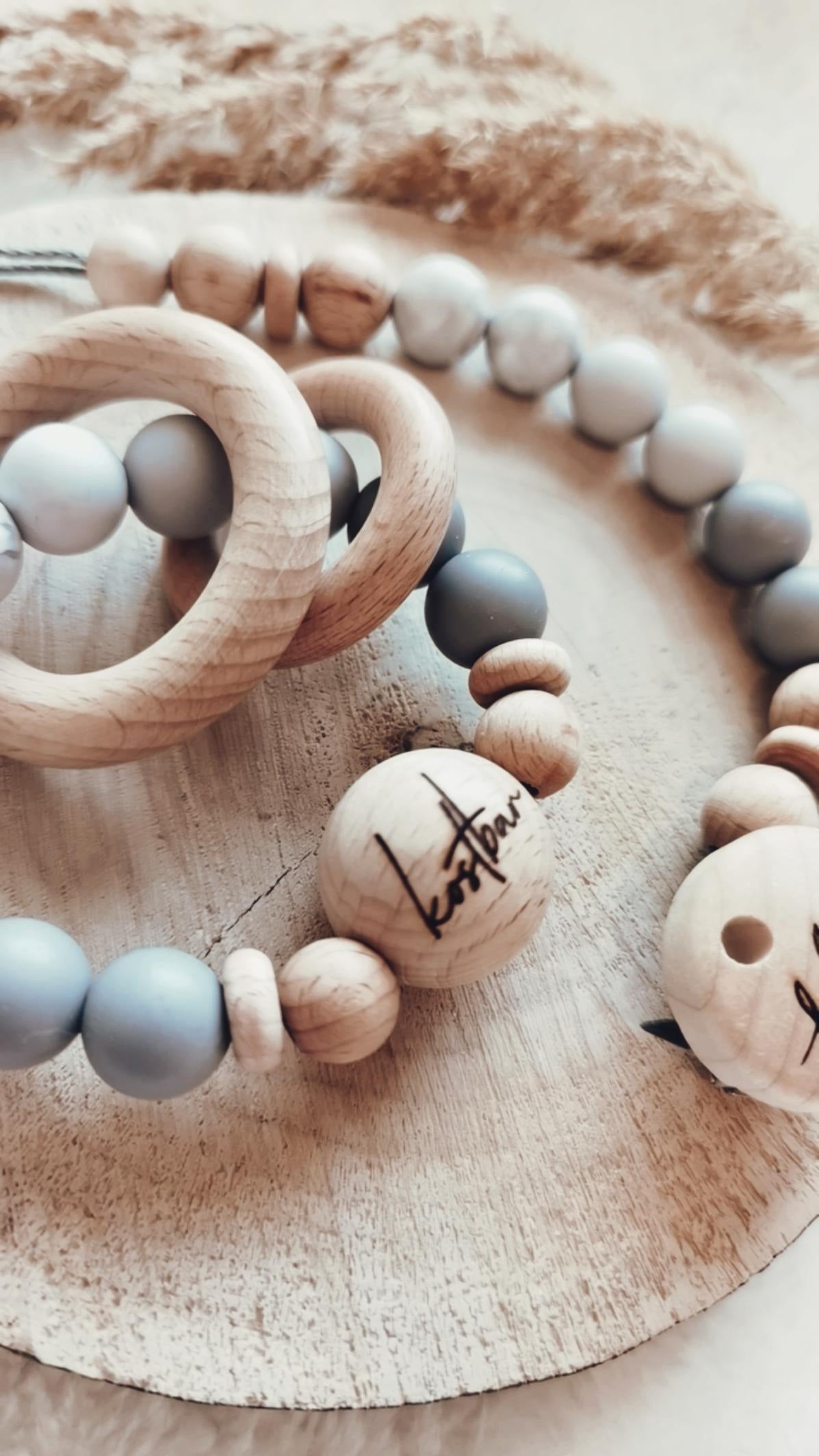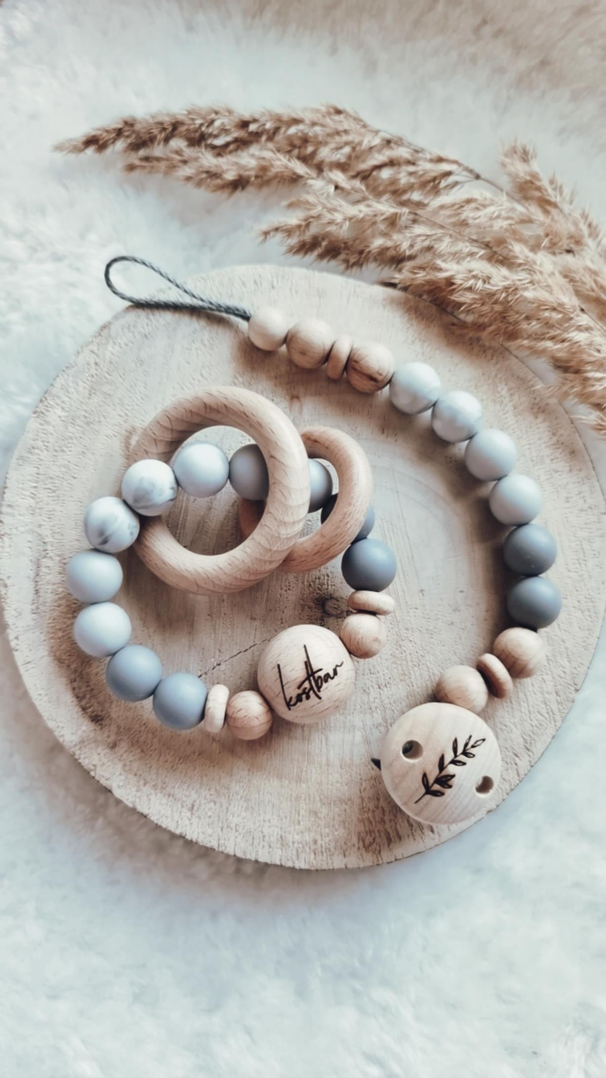 Baby Set -Ombre grau- Schnullerkette und oder Greifling
