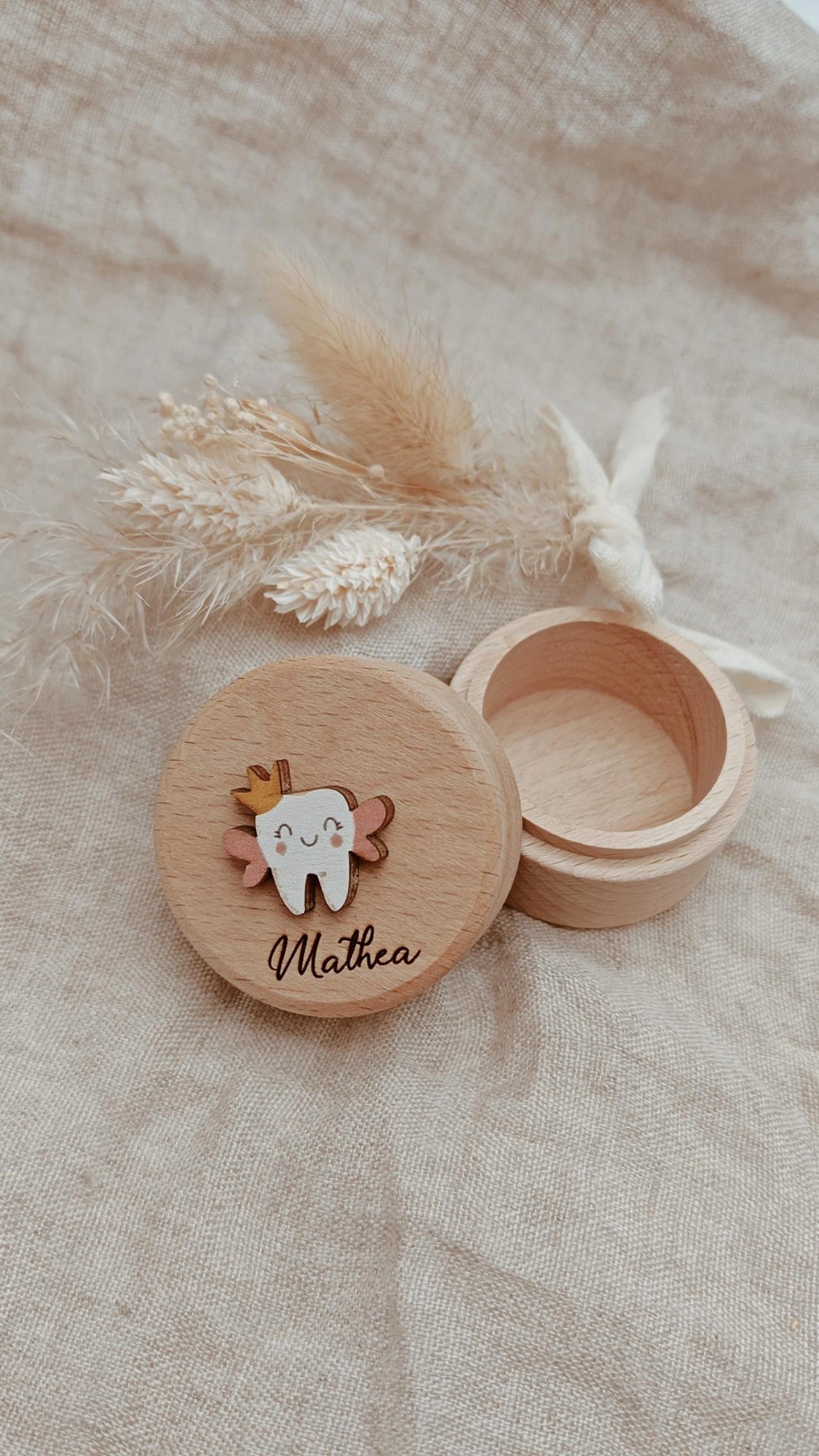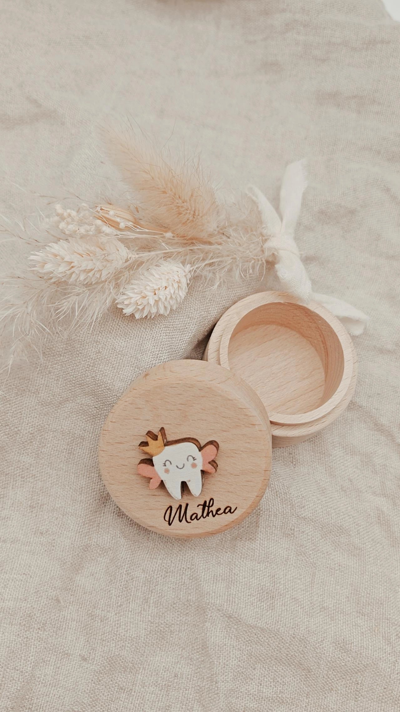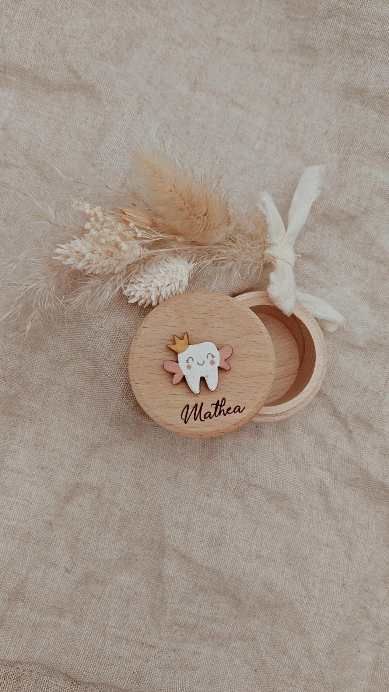 Diese süße Zahndose ist der perfekte Aufbewahrungsort für die ersten Zähnchen deines Kindes! Mit ihrem charmanten Design und liebevollen Details macht sie das Sammeln und Aufbewahren von Milchzähnen zu einem besonderen Erlebnis.
