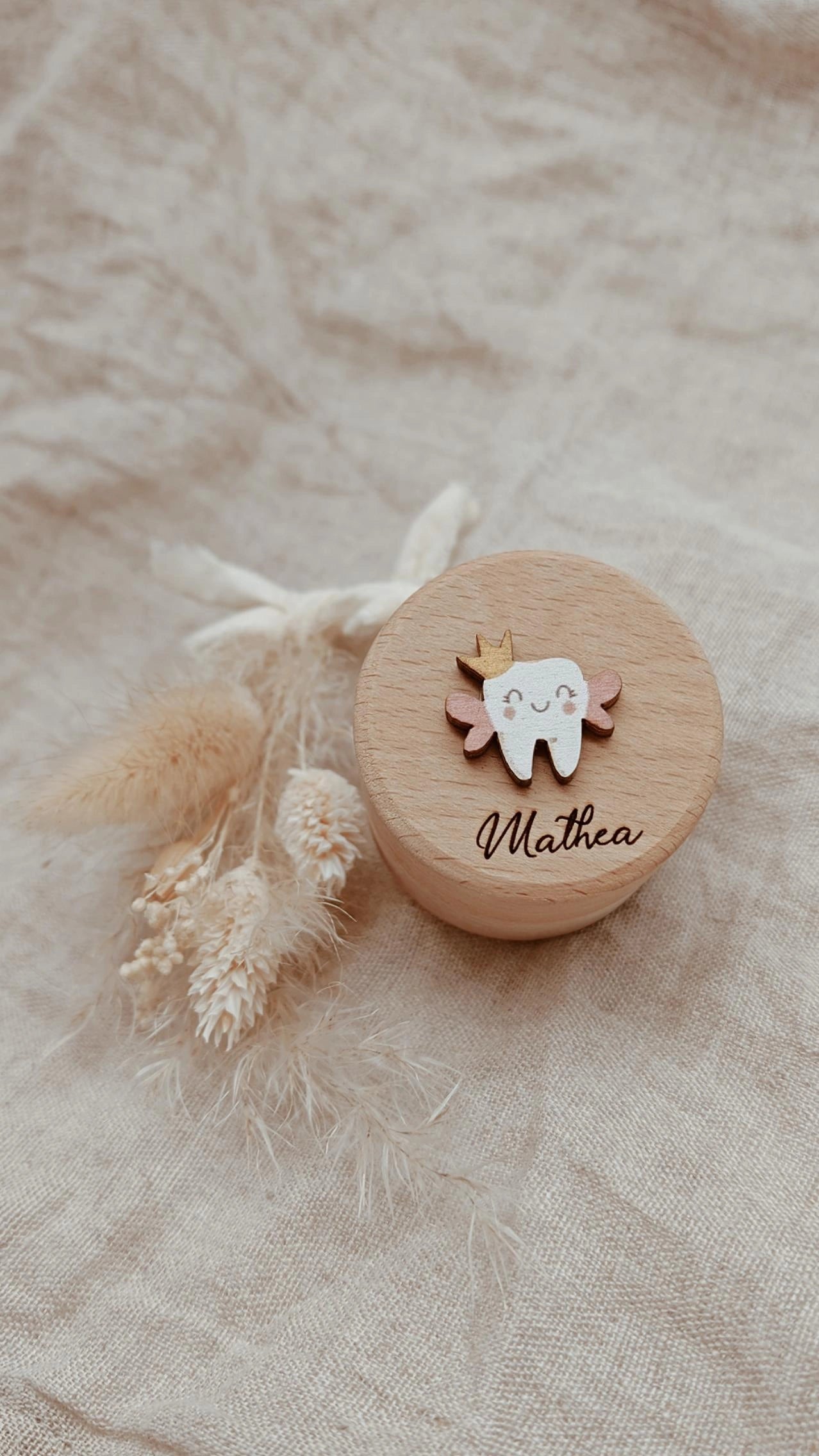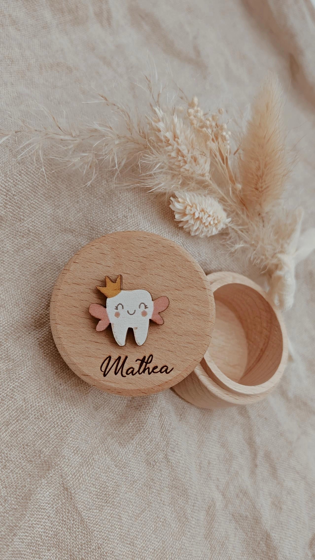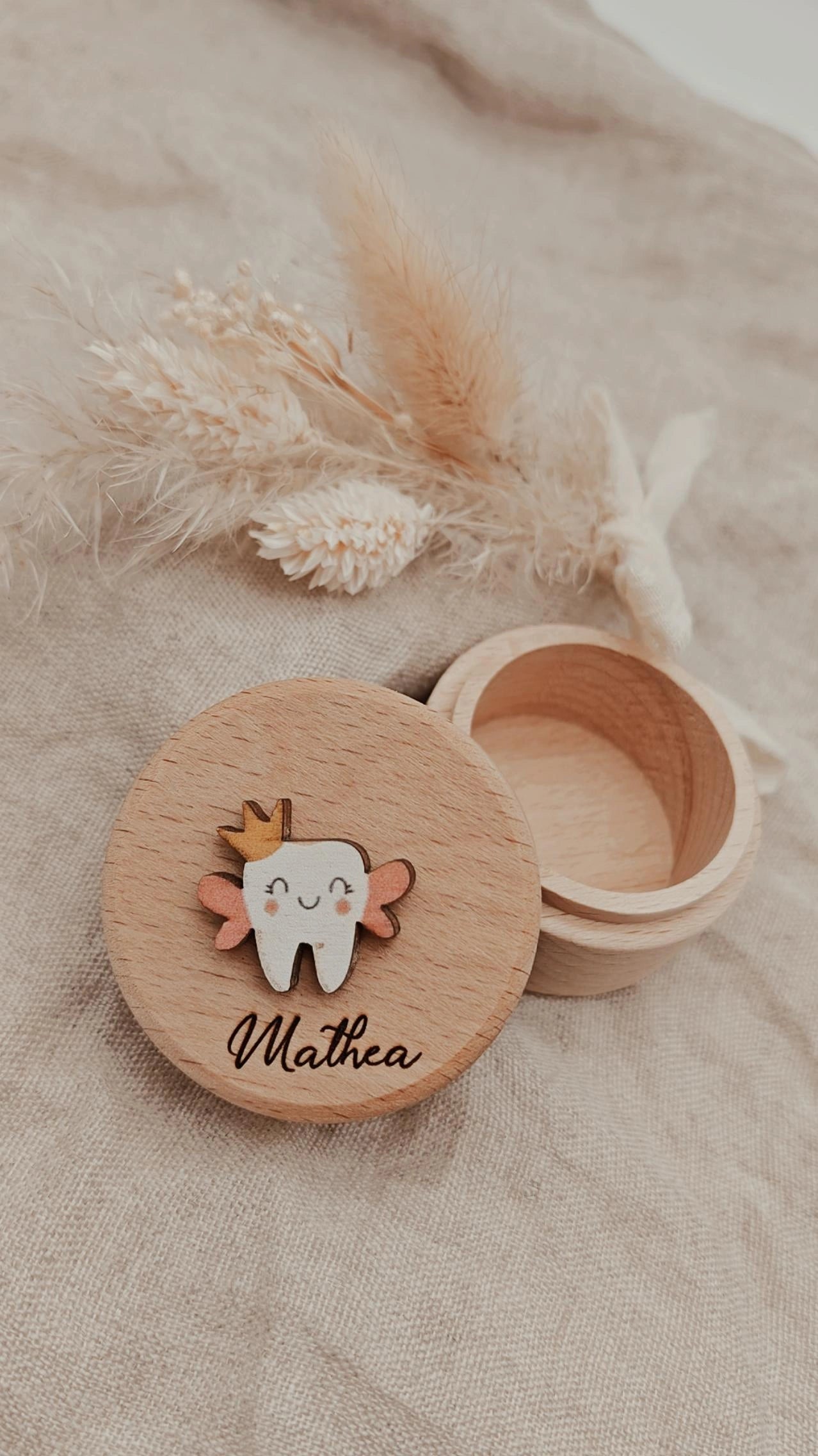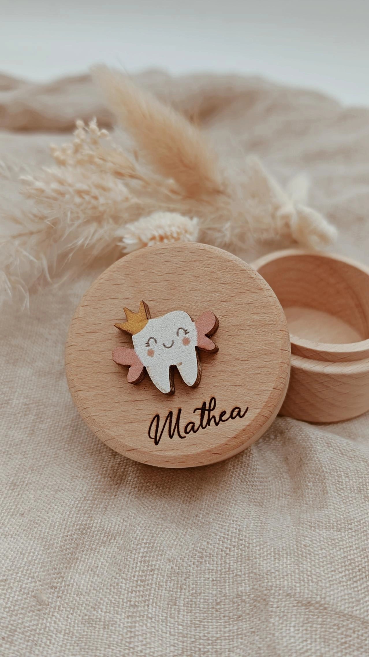 Diese süße Zahndose ist der perfekte Aufbewahrungsort für die ersten Zähnchen deines Kindes! Mit ihrem charmanten Design und liebevollen Details macht sie das Sammeln und Aufbewahren von Milchzähnen zu einem besonderen Erlebnis.