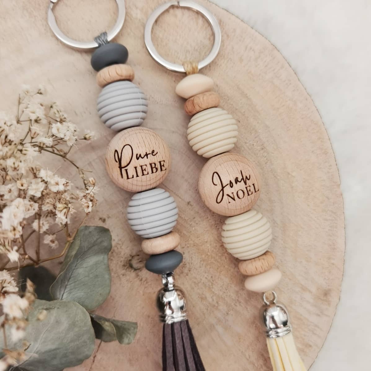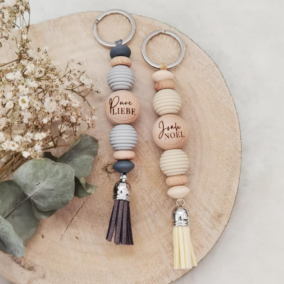 Liebevoll handgefertigte Schlüsselanhänger mit individueller Gravur.