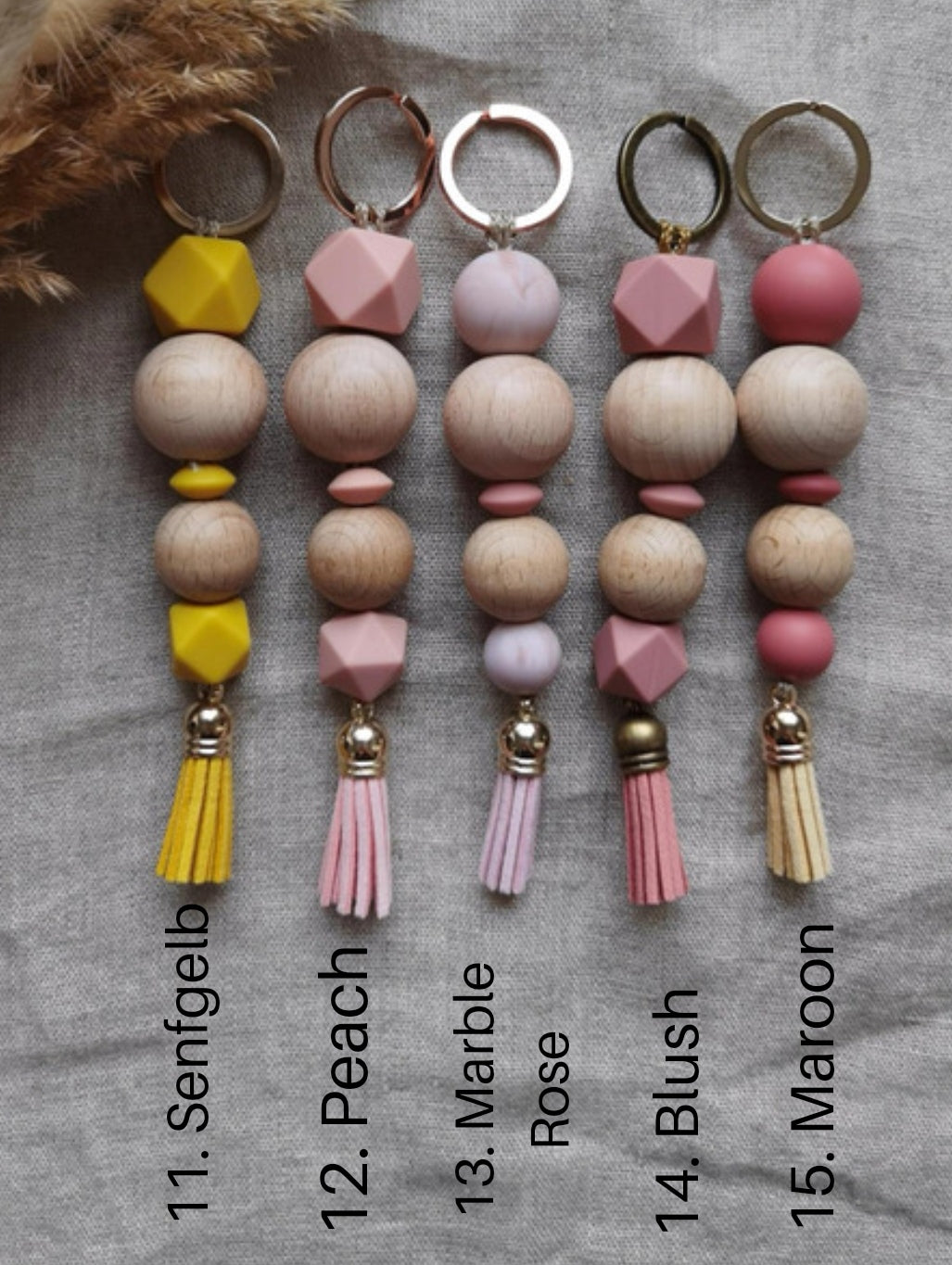 Je nachdem, wie viele Bestellungen eingehen, kann es zu farblichen Abweichungen bei der Quastenfarbe kommen, da wir nicht Unmengen an gleichen Quasten haben. Sie werden aber immer passend zum Anhänger sein!