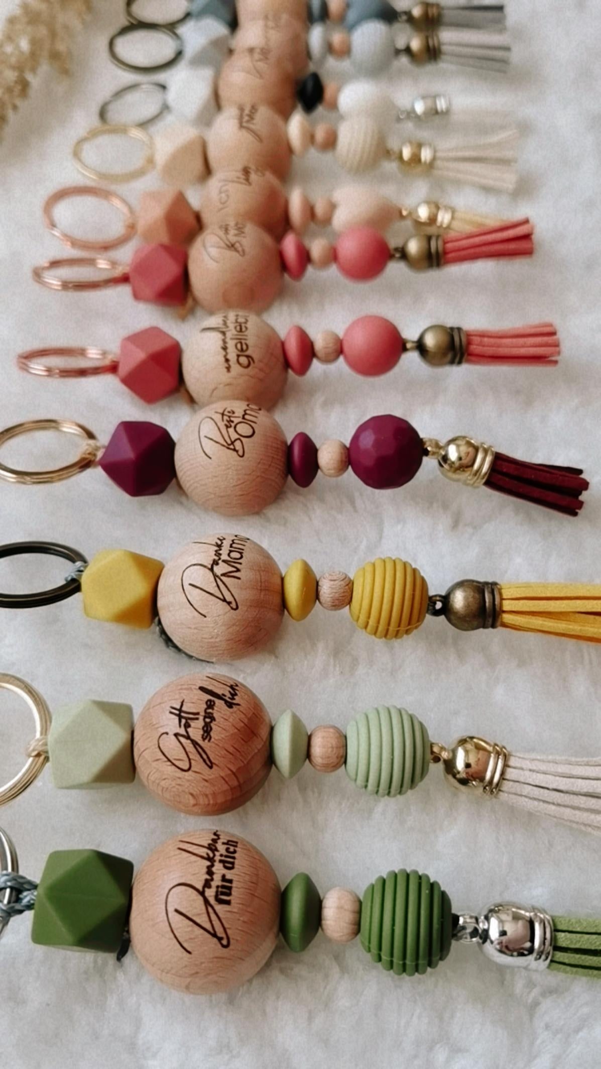 Liebevoll handgefertigte Schlüsselanhänger mit individueller Gravur.