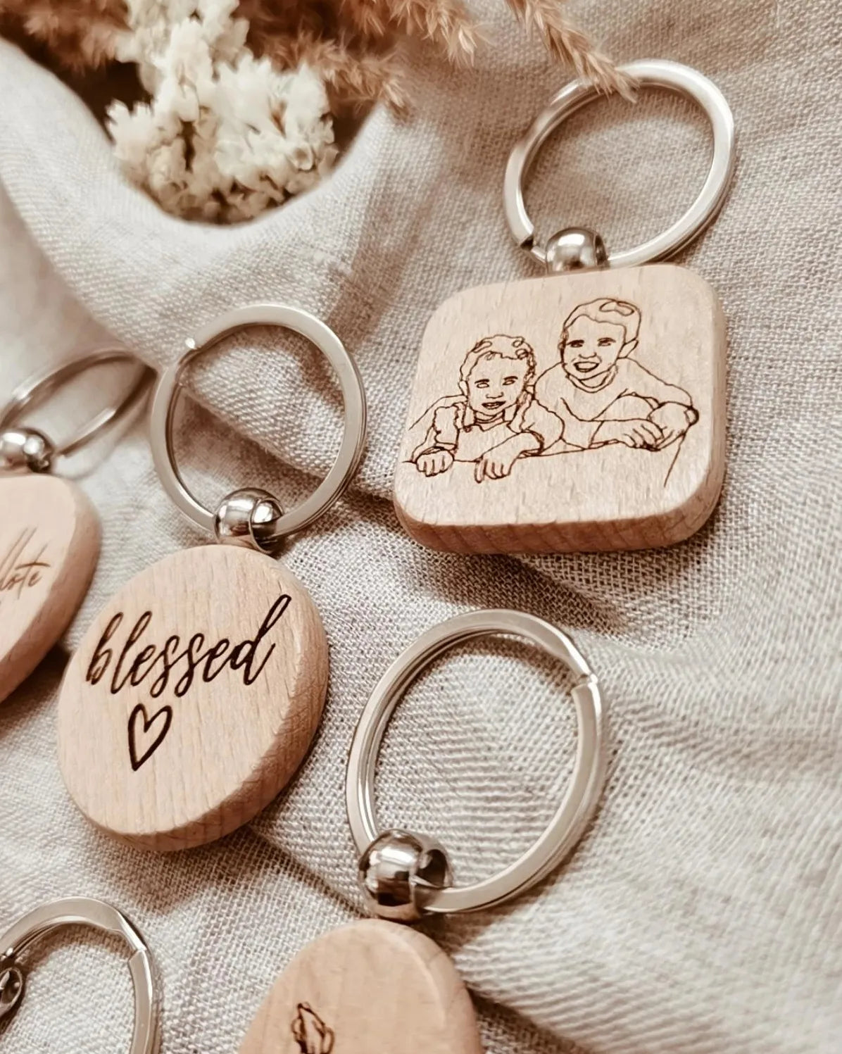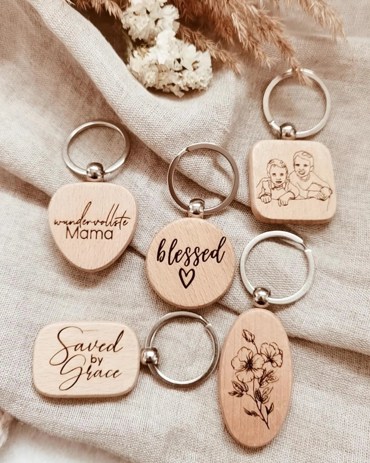 Besondere Schlüsselanhänger mit individueller Gravur. Als besondere Variante mit eigenem Lineart Bild.