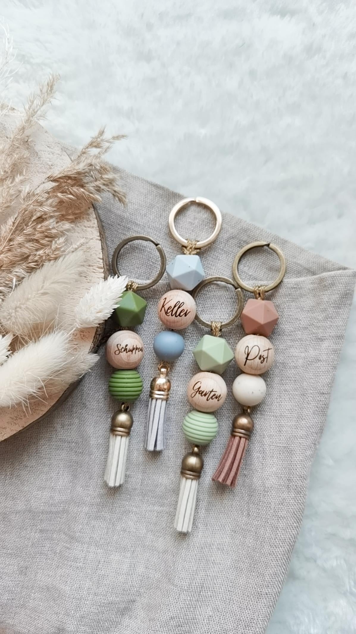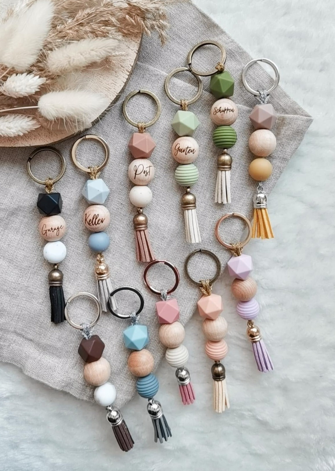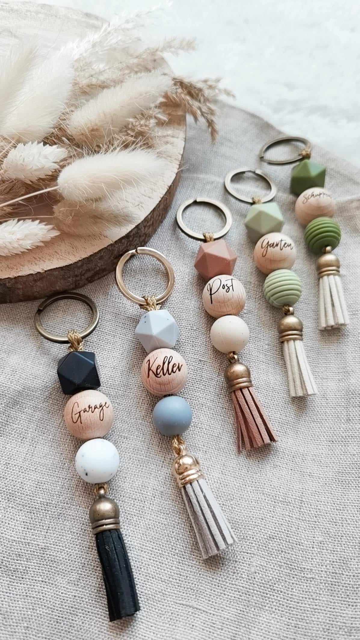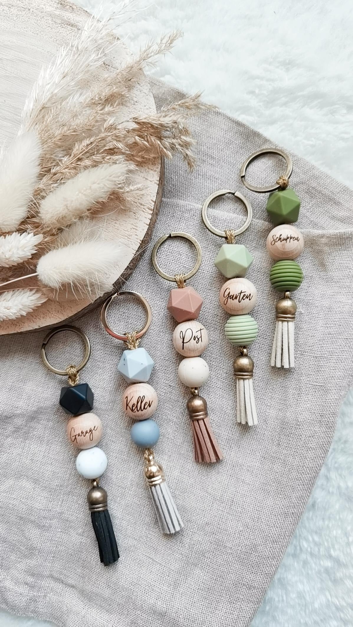 Liebevoll handgefertigte Schlüsselanhänger mit individueller Gravur.