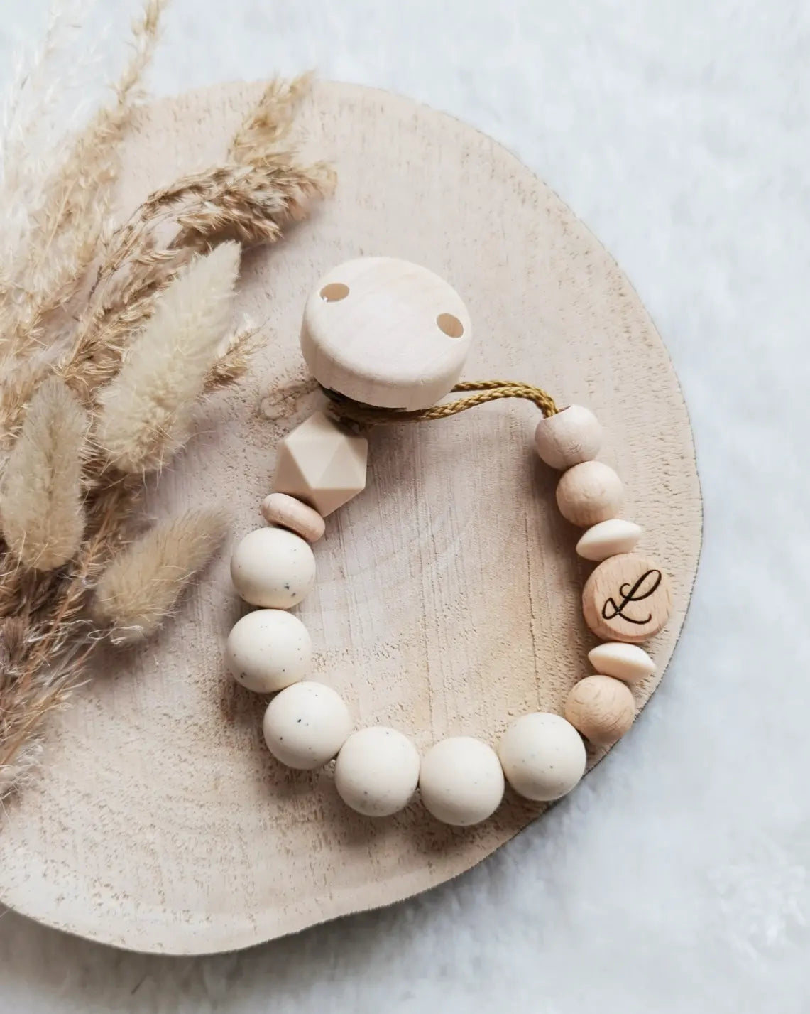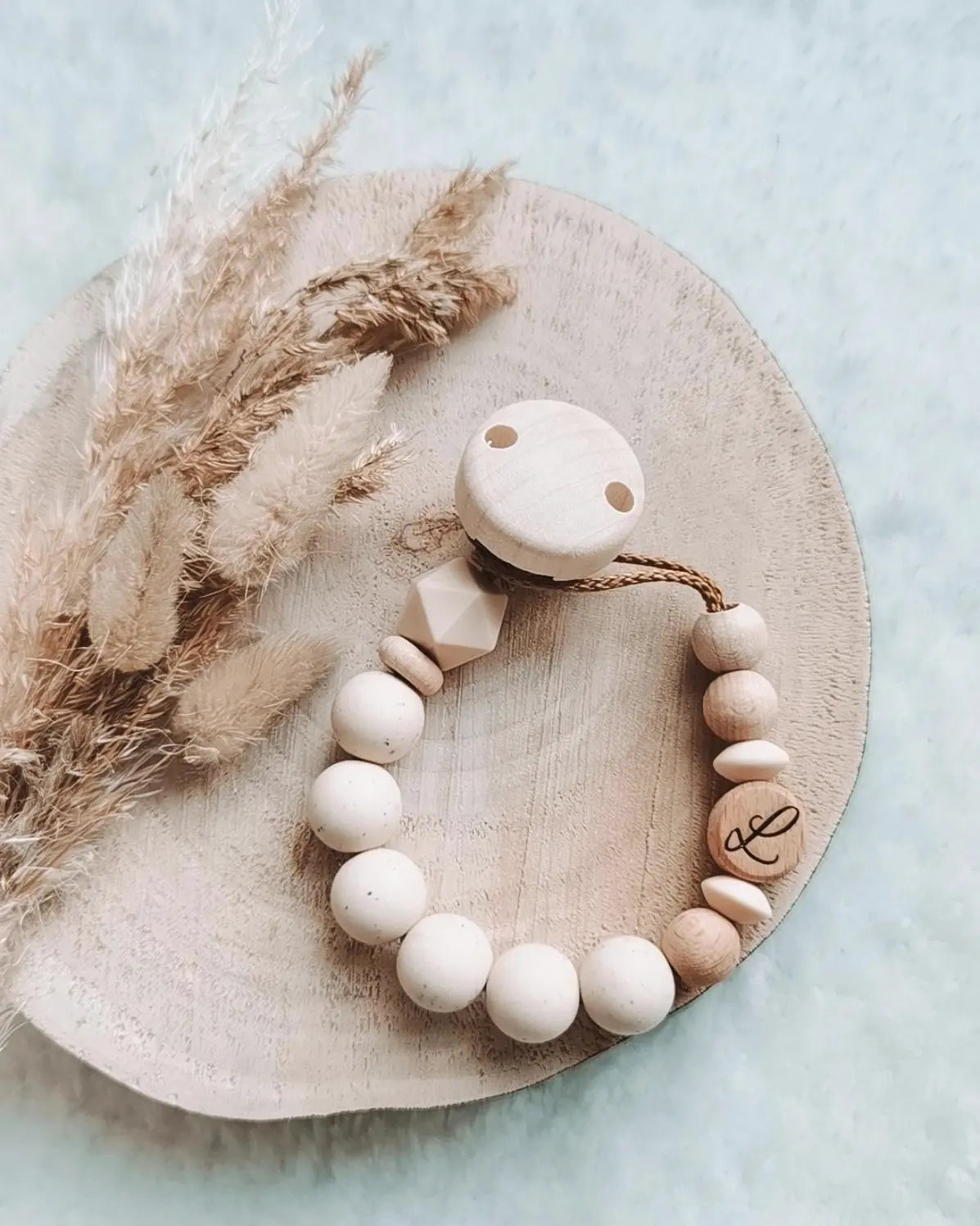 Ihr Kind sollte den Schnullerhalter bzw. die Kette nur unter der Aufsicht von Erwachsenen benutzen.