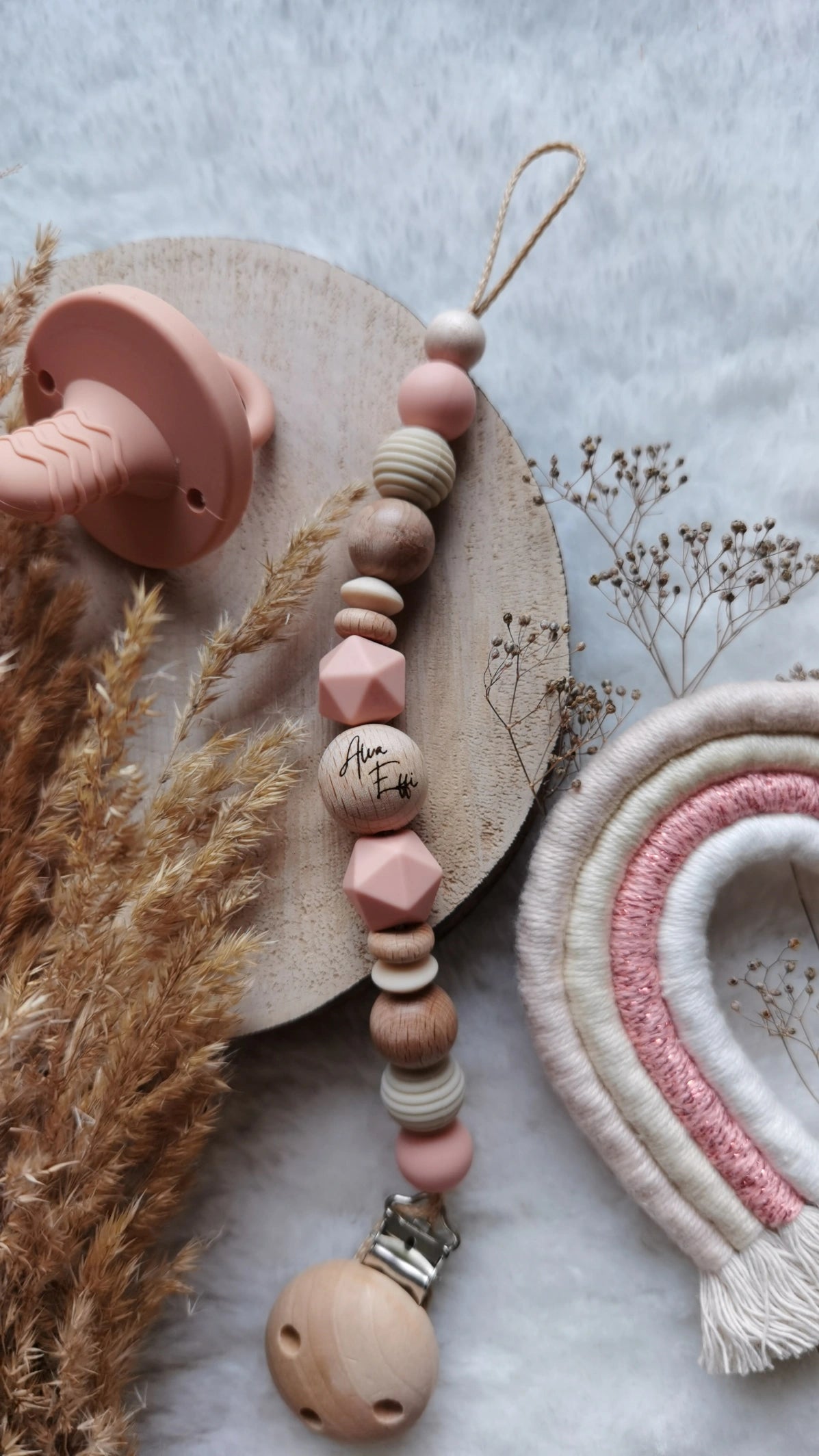 Die Schnullerkette (wie so viele andere Dinge von Lile) ist wunderschön und mit den eingearbeiteten Kautschukperlen auch super-praktisch, weil da die Kinder auch gern drauf rumkauen. Gut fürs Zahnen, ohne dass gleich geschnullert wird.