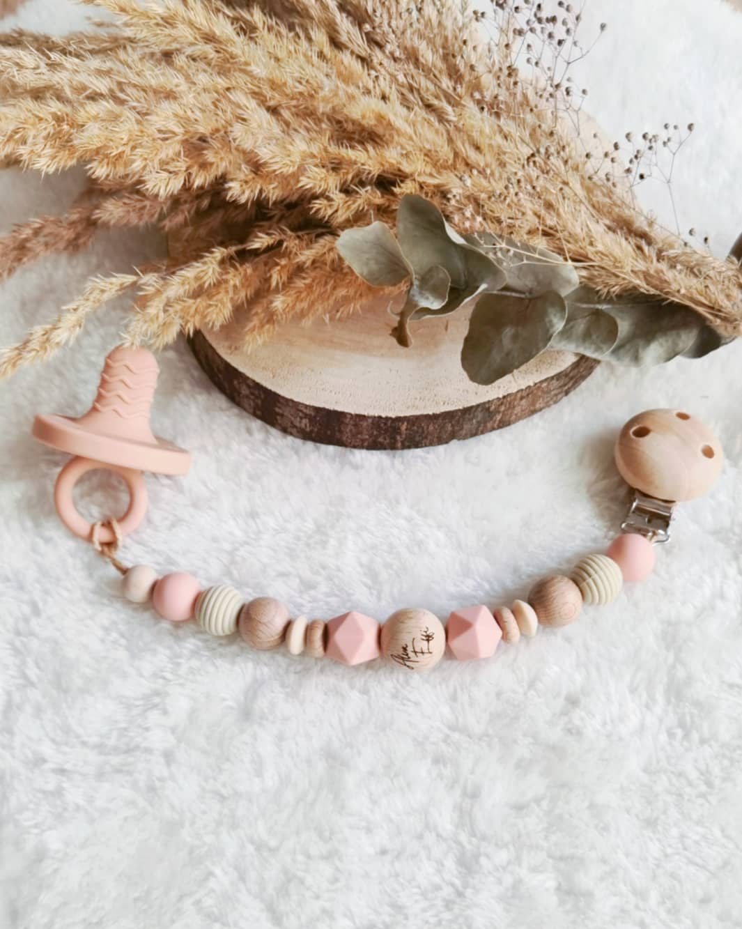 Du kannst die Schnullerkette mit oder ohne Schnulleradapter auswählen, dieser passt zb auf Schnuller von MAM,  Bibs (Supreme/Couture) und andere solcher Art. (Ohne den Befestigungsring)  Er erleichtert einem das austauschen des Schnullers, und es geht super schnell.
