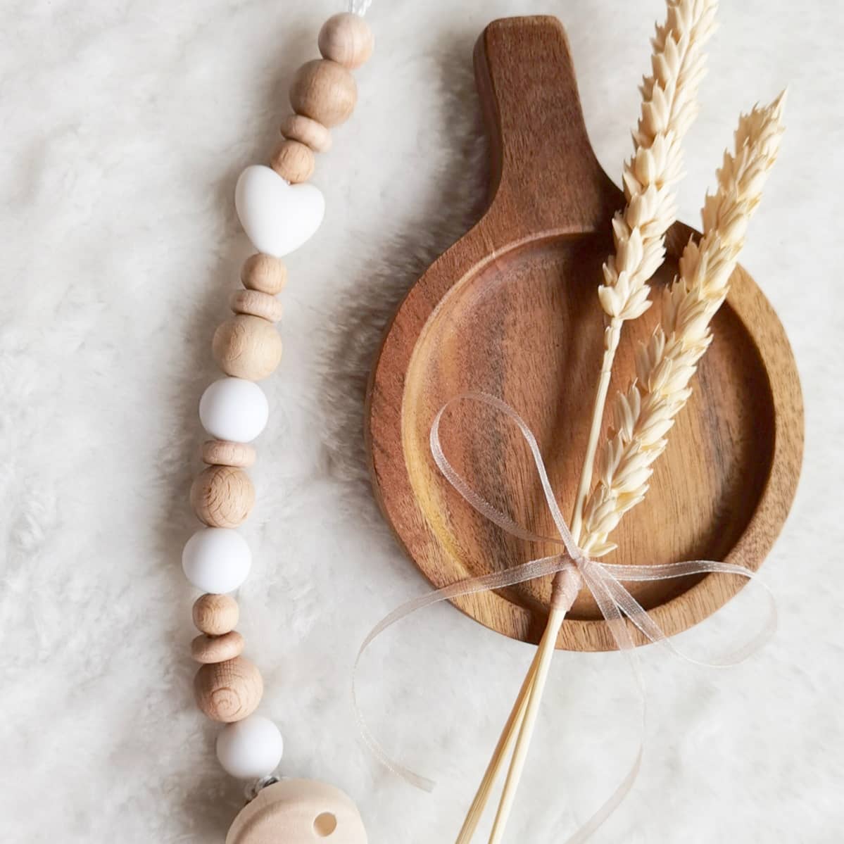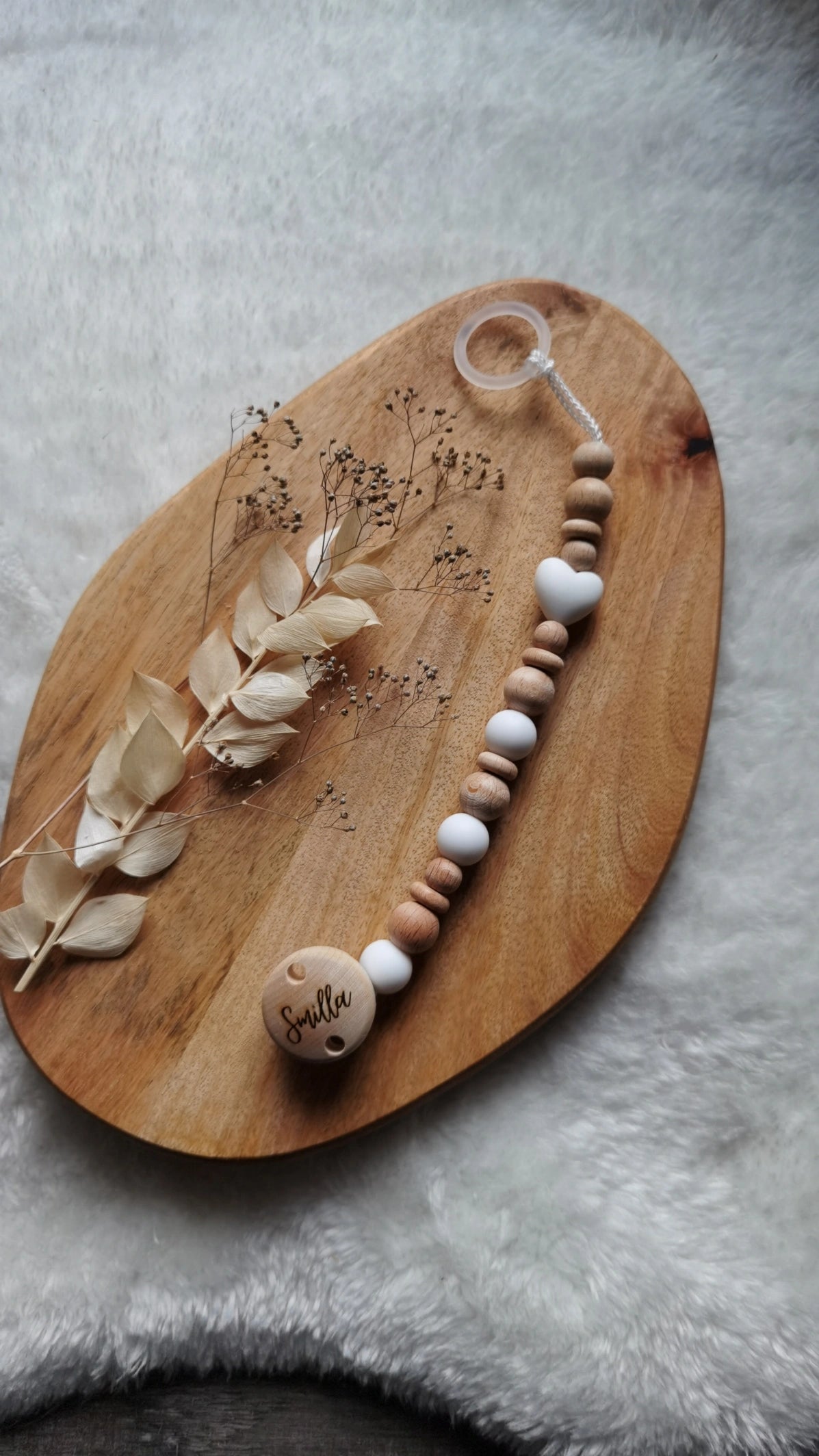 Ihr Kind sollte den Schnullerhalter bzw. die Kette nur unter der Aufsicht von Erwachsenen benutzen.