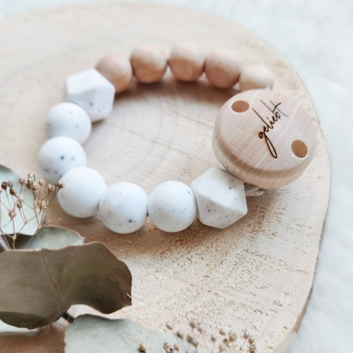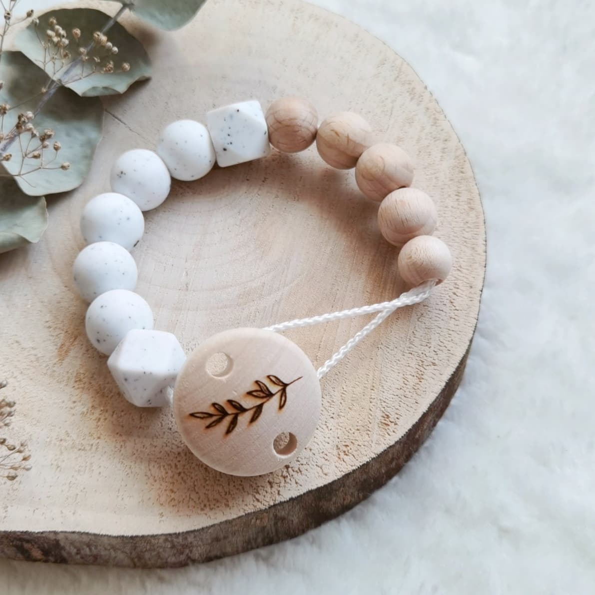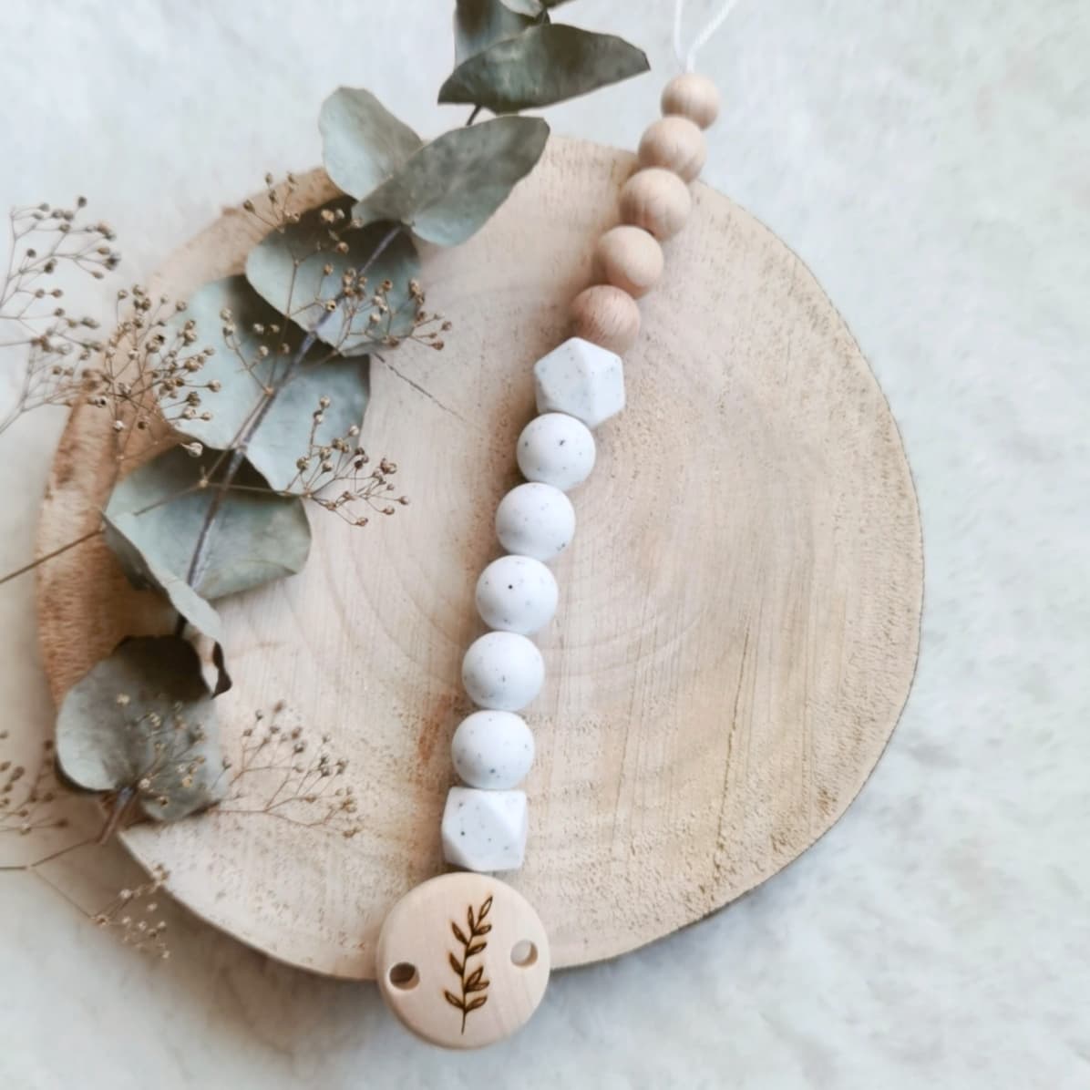 Ihr Kind sollte den Schnullerhalter bzw. die Kette nur unter der Aufsicht von Erwachsenen benutzen.
